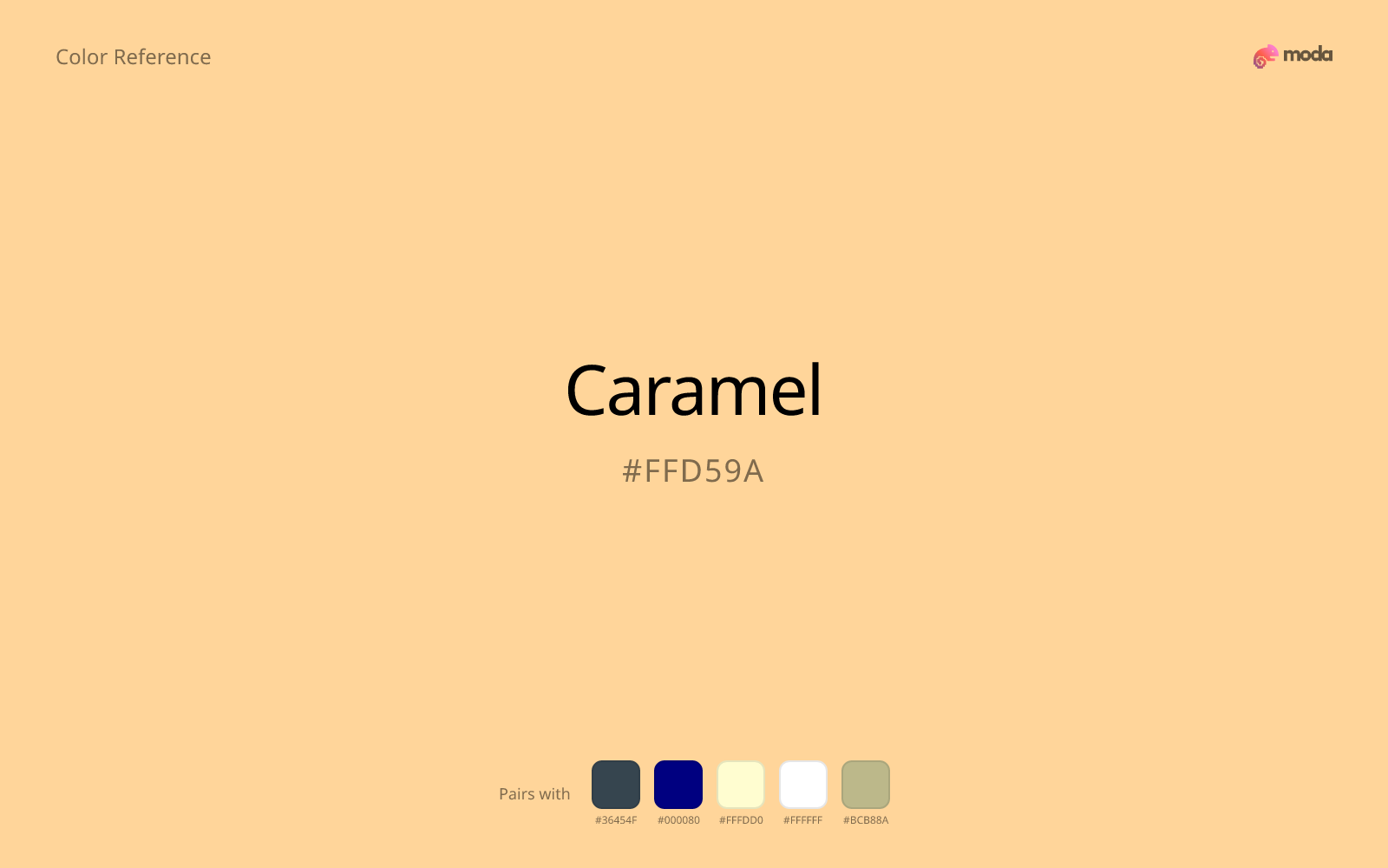 - •Caramel works best as a background tint, card fill, or section divider — it adds warmth without competing with foreground content. Pair with dark text for readability.
