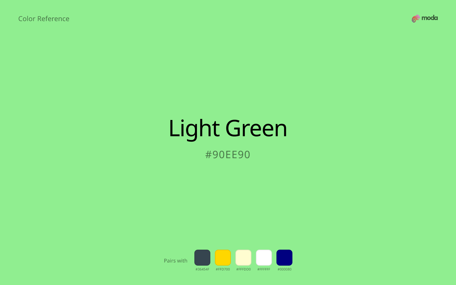 Pastel greens labeled "light green" are common in healthcare waiting rooms, spa branding, and early educational materials. In CSS, "LightGreen" is a named color.