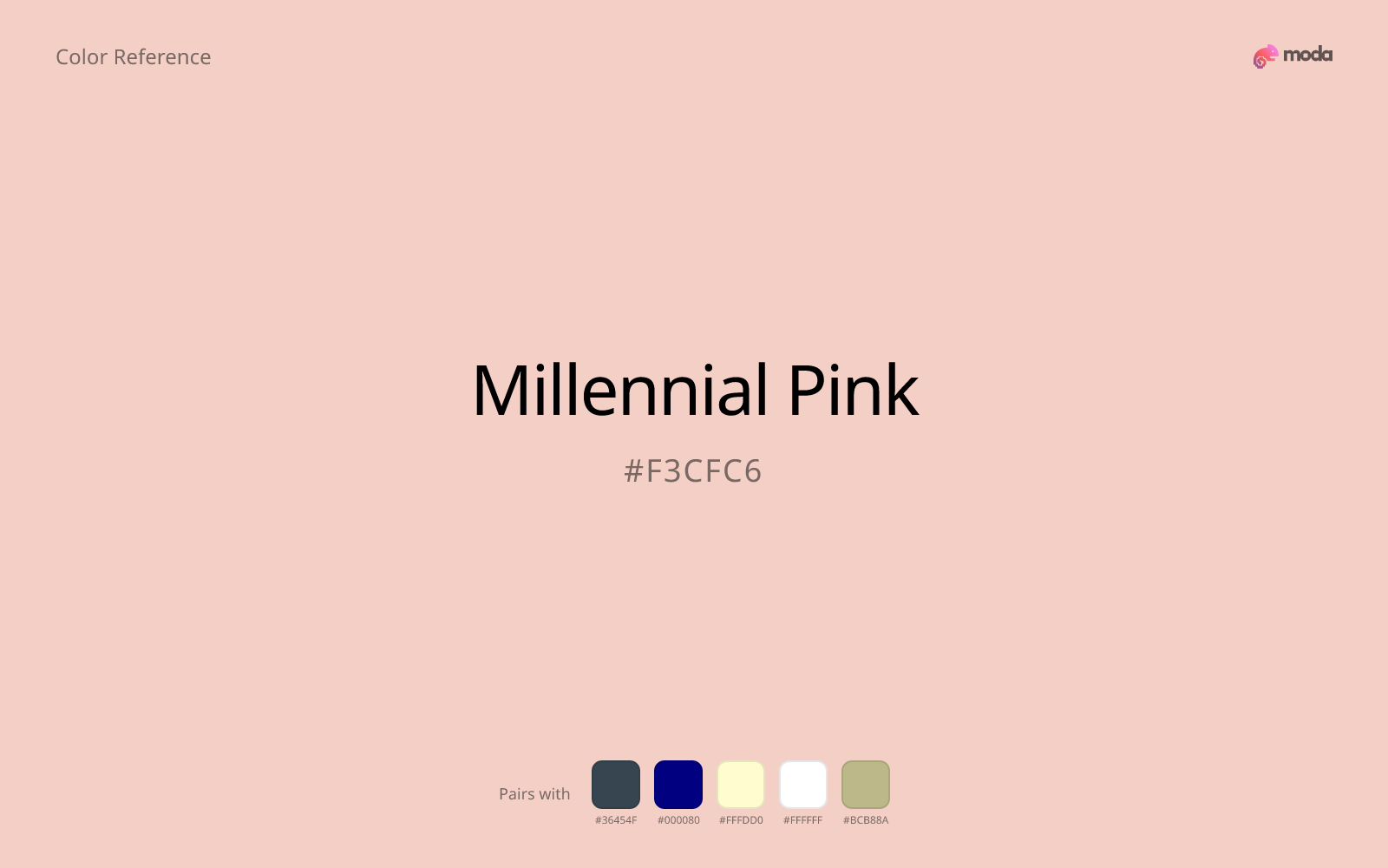 - •Millennial Pink works best as a background tint, card fill, or section divider — it adds warmth without competing with foreground content. Pair with dark text for readability.