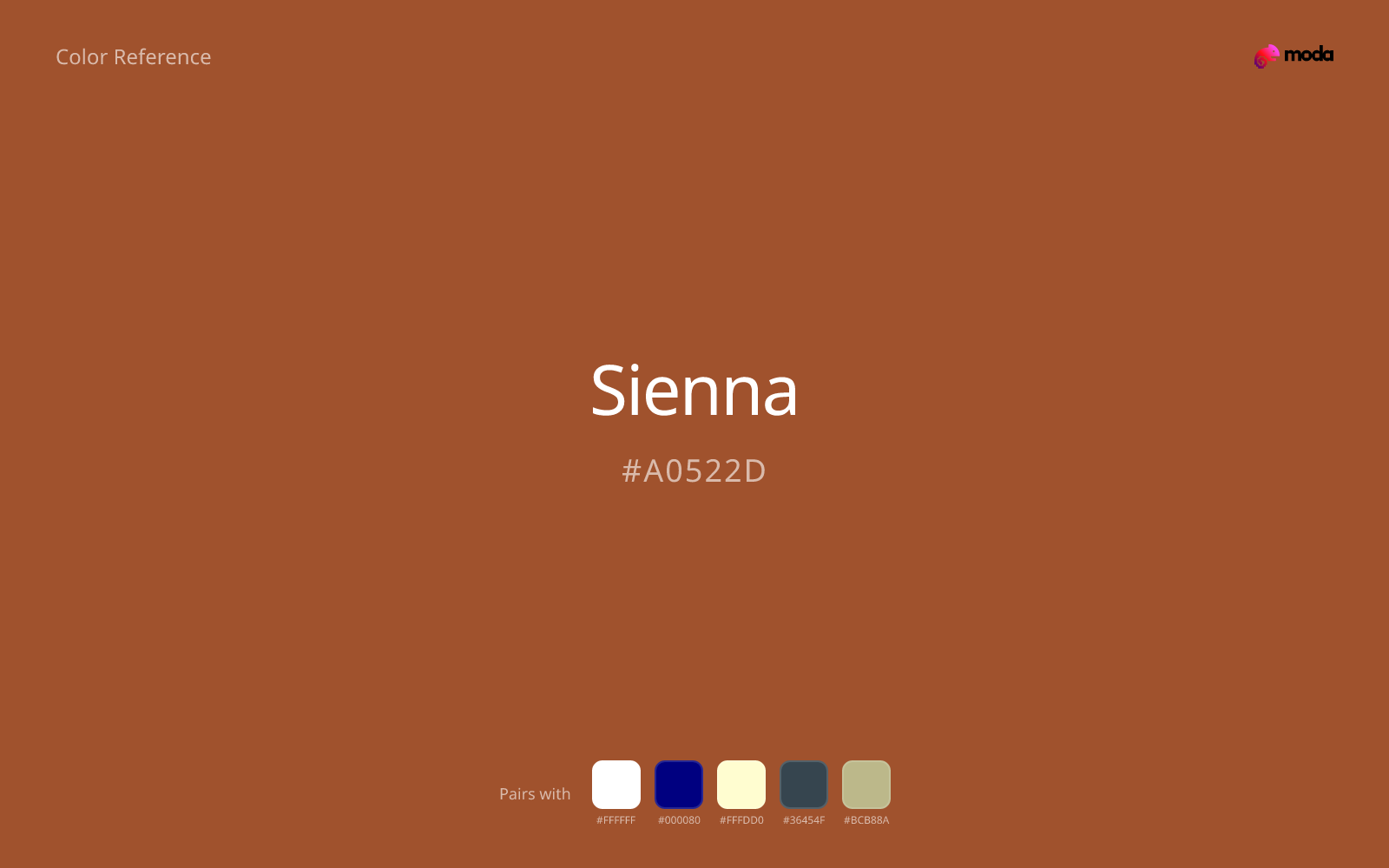 Sienna sits in the middle of the spectrum in a useful way: strong enough for emphasis, but controlled enough to support a broader brand or presentation system when the contrast is handled well.