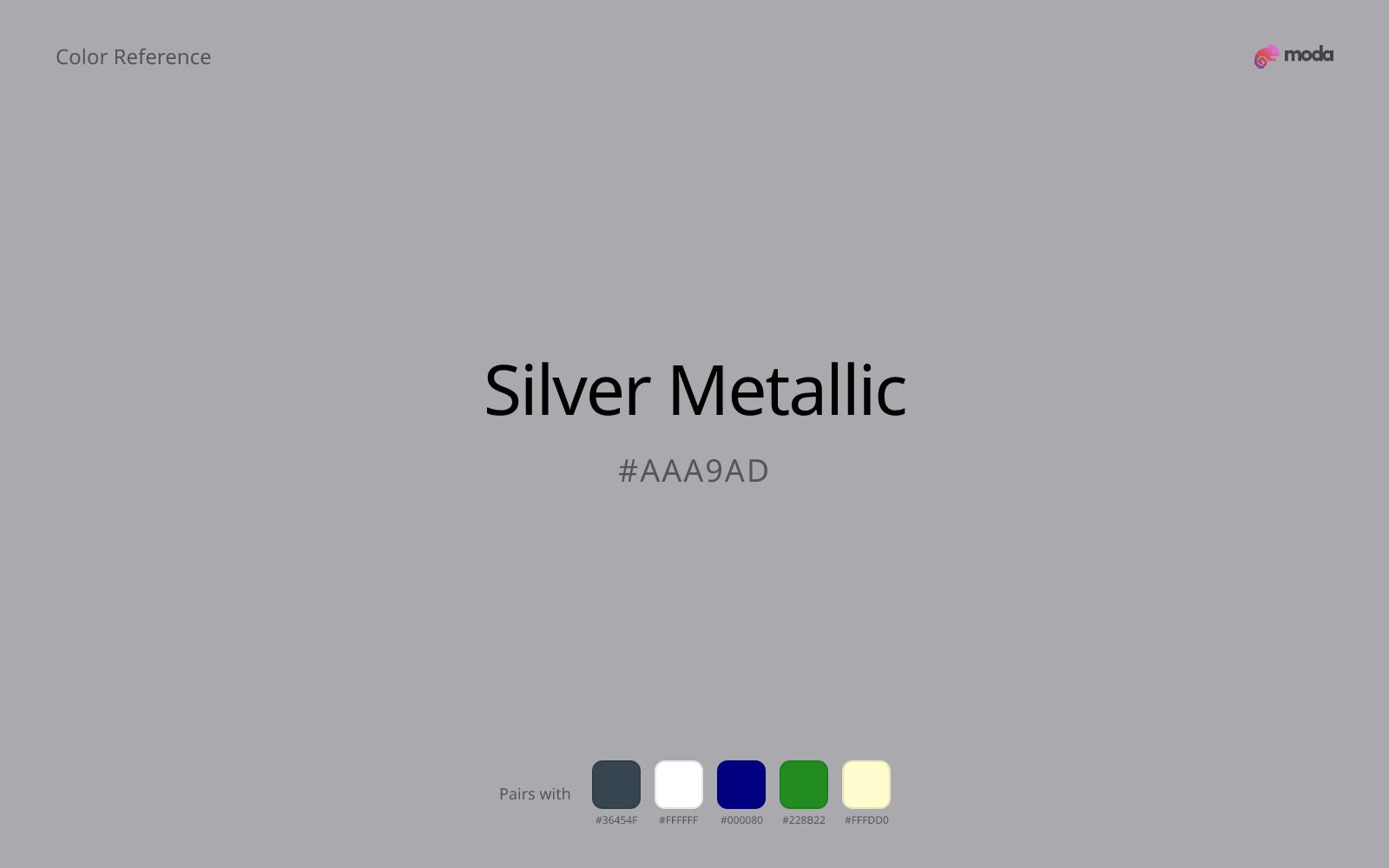 Silver Metallic is restrained enough to carry larger areas without becoming exhausting. That makes it useful for document systems, presentation themes, and site sections where louder colors would wear out their welcome.