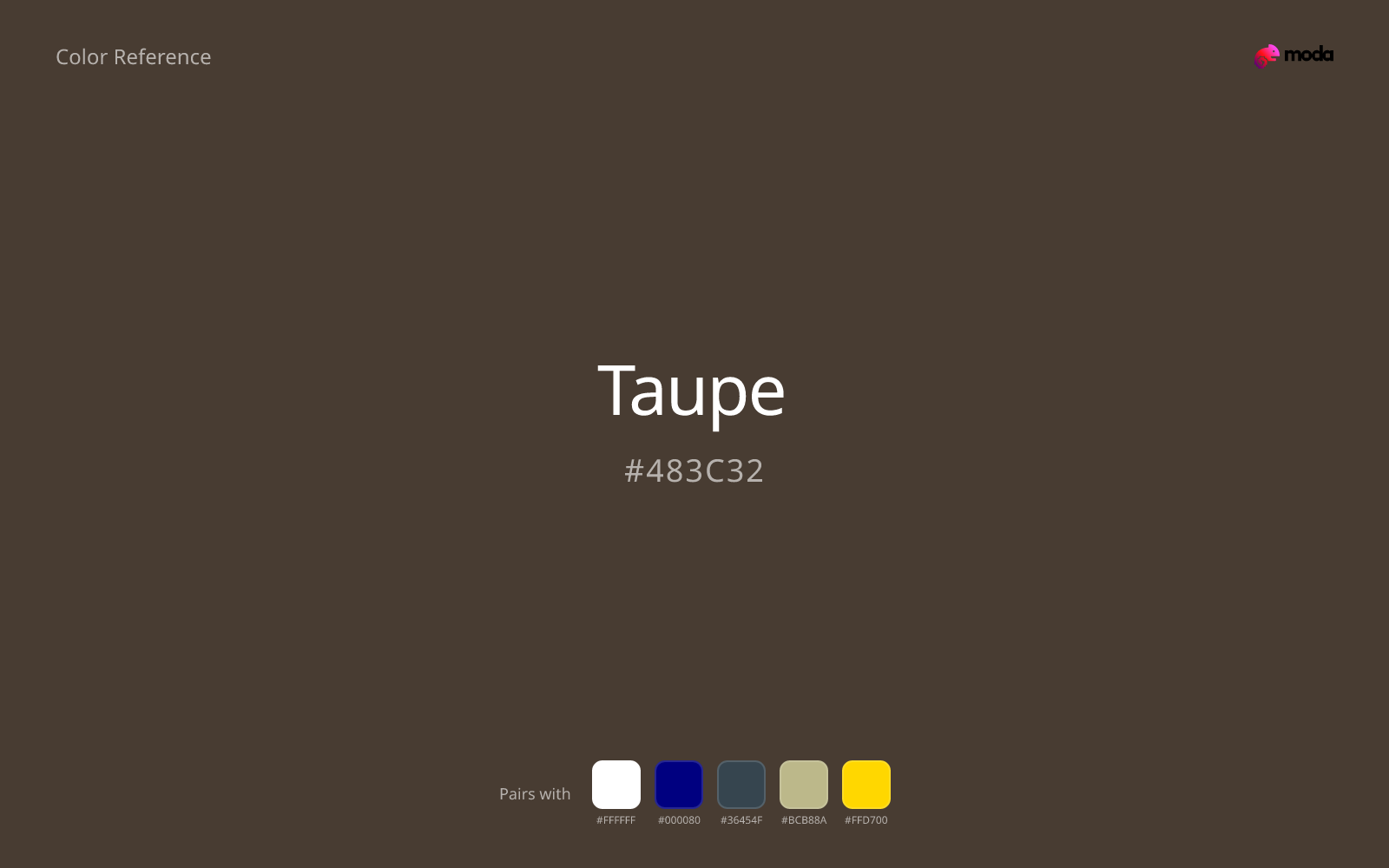 - •Dark browns tones like taupe tend to feel serious and anchoring — useful when the design brief calls for weight and restraint.