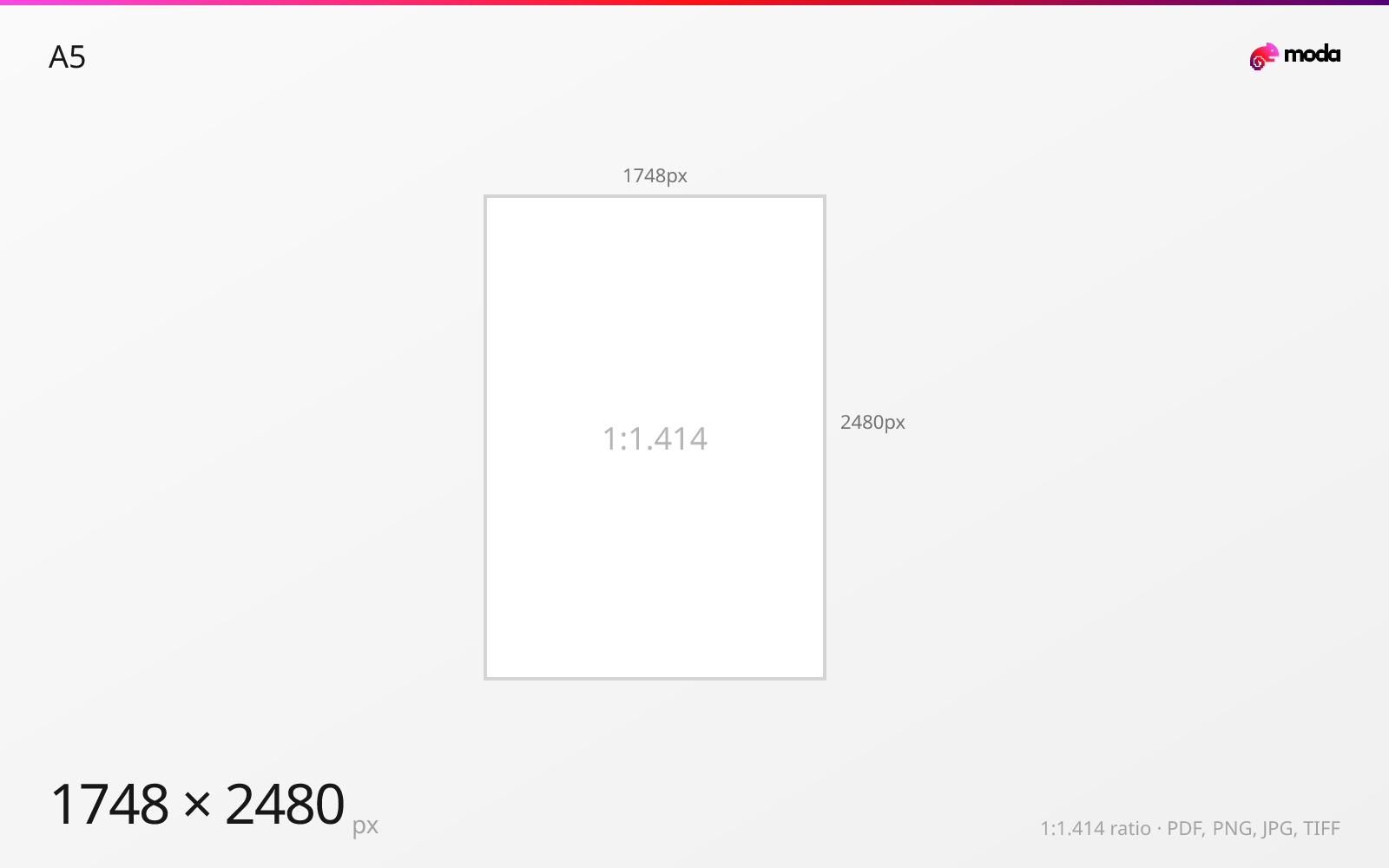 A5 is 148×210mm (5.83×8.27 inches). At 300 DPI for print, that's 1748×2480 pixels.