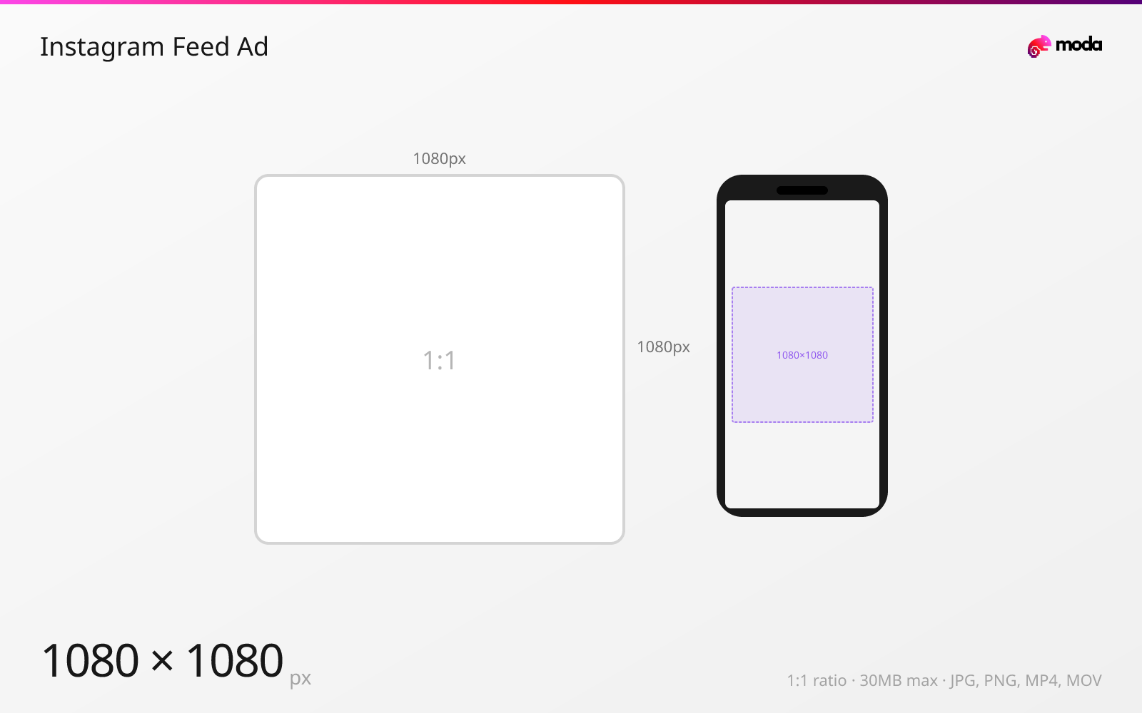 The recommended Instagram feed ad size is 1080 × 1080 pixels (1:1 aspect ratio).