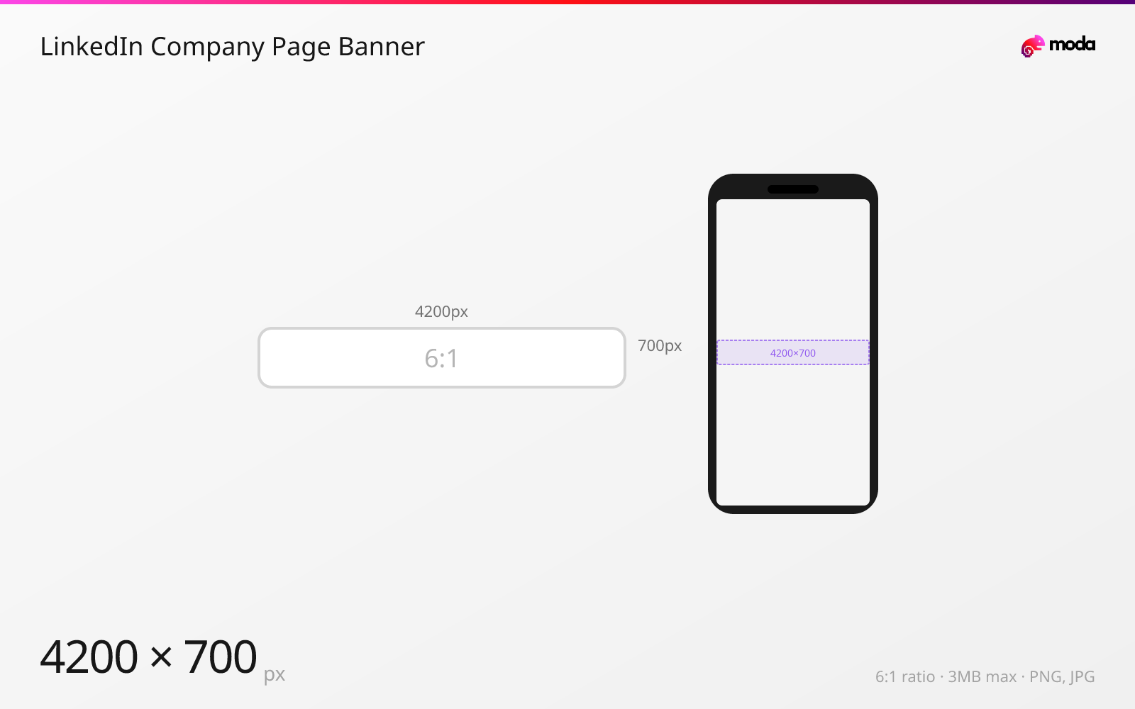 The recommended LinkedIn company page banner size is 4200 × 700 pixels (6:1 aspect ratio).
