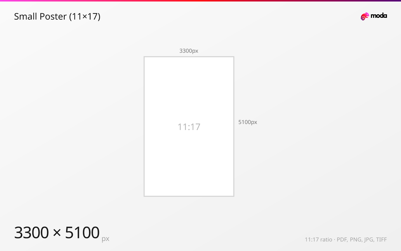 - 1Open Moda and create a new canvas at 3300×5100 pixels.