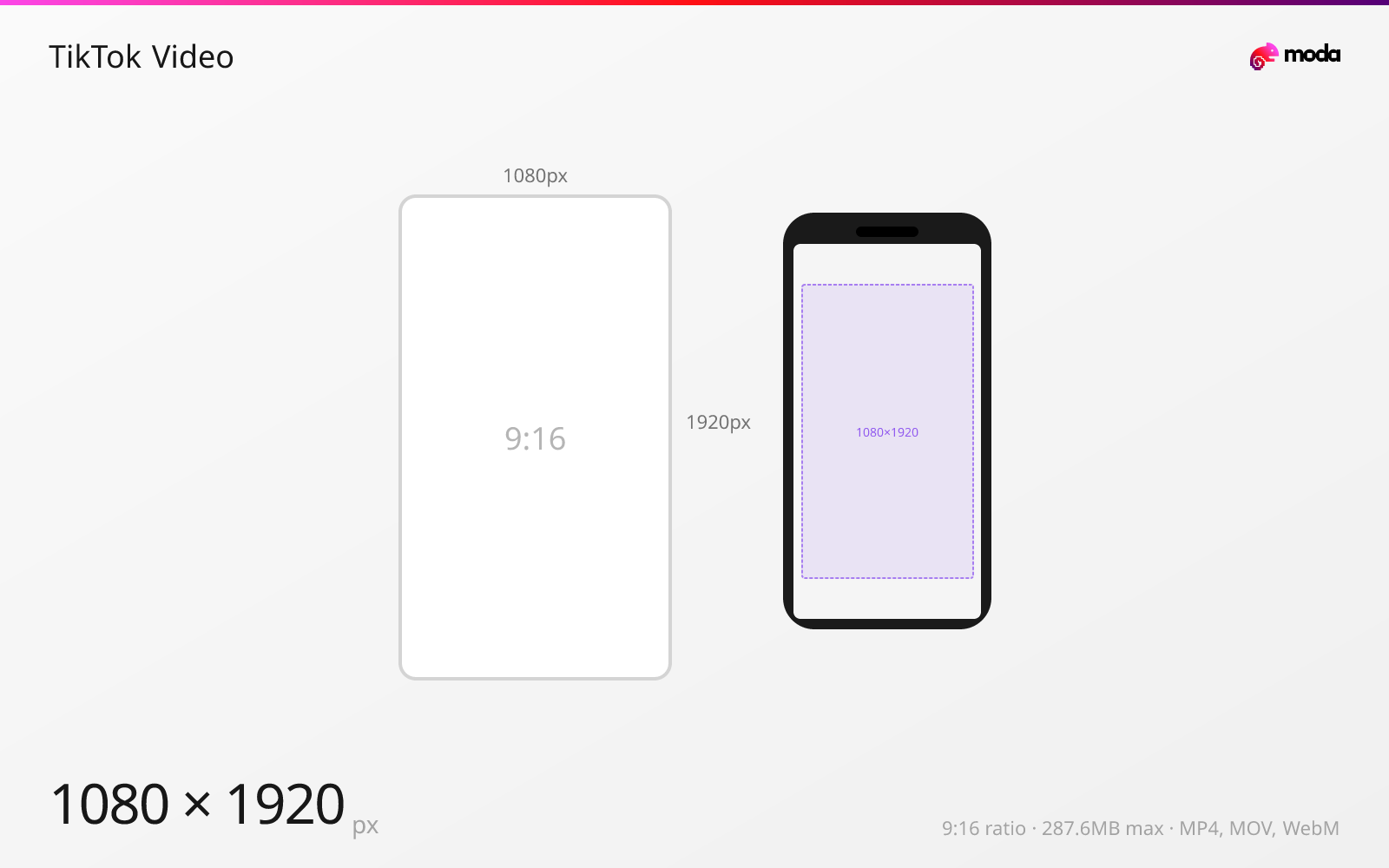 The recommended TikTok video size is 1080 × 1920 pixels (9:16 aspect ratio).